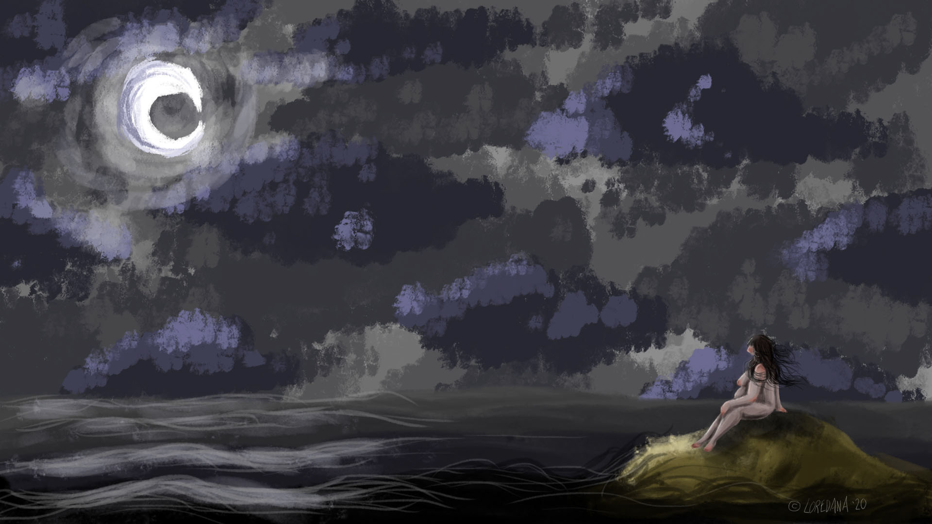 You see this animorphotic creature struggeling to get from one island to another. The sea is a kind of sludge/tar that makes it diffecult to get through it. When she finally get the island she wanted to be, you can see that it's the exact same island.
